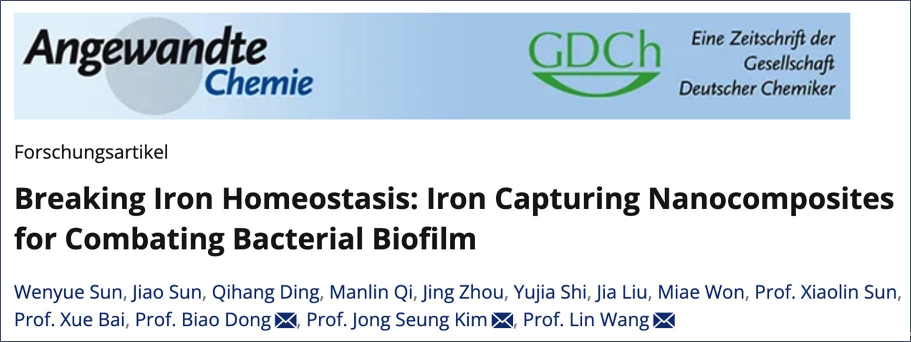 近日,伟德官网下载苹果手机口腔种植科王林教授、电子科学与工程学院董彪教授与韩国高丽大学化学学院Jong Seung Kim教授的合作团队,开发了一种镓、铜掺杂的四-羧基苯基卟啉金属有机框架Ga-CT@P纳米结构。相关成果以题目“Breaking Iron Homeostasis: Iron Capturing Nanocomposites for Combating Bacterial Biofilm”发表于《Angewandte Chemie International Edition》上。