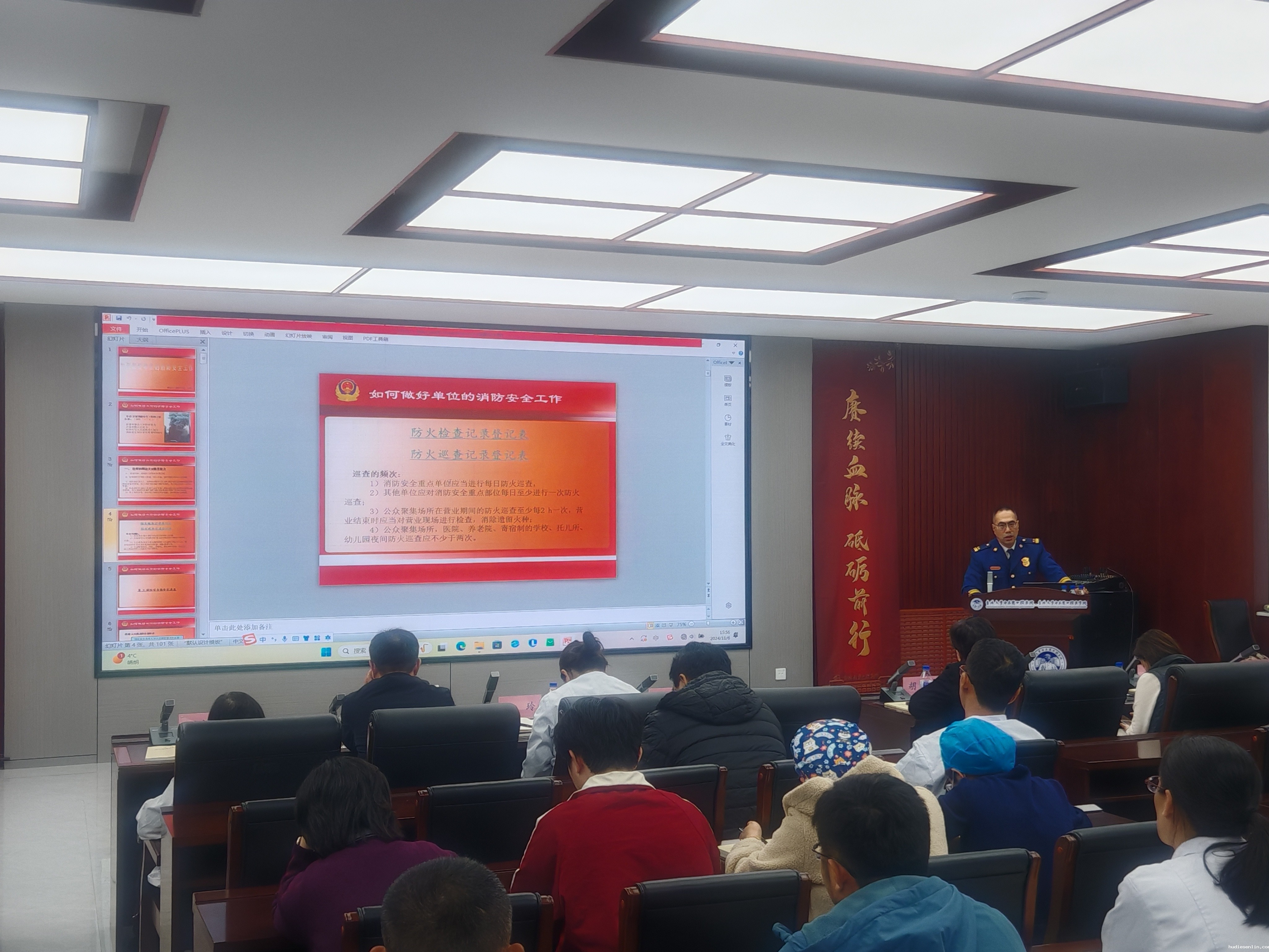 为增强全院职工的消防安全意识,提高火灾应急处置能力,在“119”消防宣传日来临之际,我院于11月6日举办了消防安全知识专题讲座。此次讲座邀请了长春市朝阳区消防救援大队二级指挥长、参谋胡琼担任主讲。院领导班子成员,机关职能科室主任,临床医技科室主任、护士长,各教研室主任,保卫与安全生产办公室全体成员,研究生、本科生相关学生干部参加了此次培训。讲座由行政副院长刘海涛主持。
