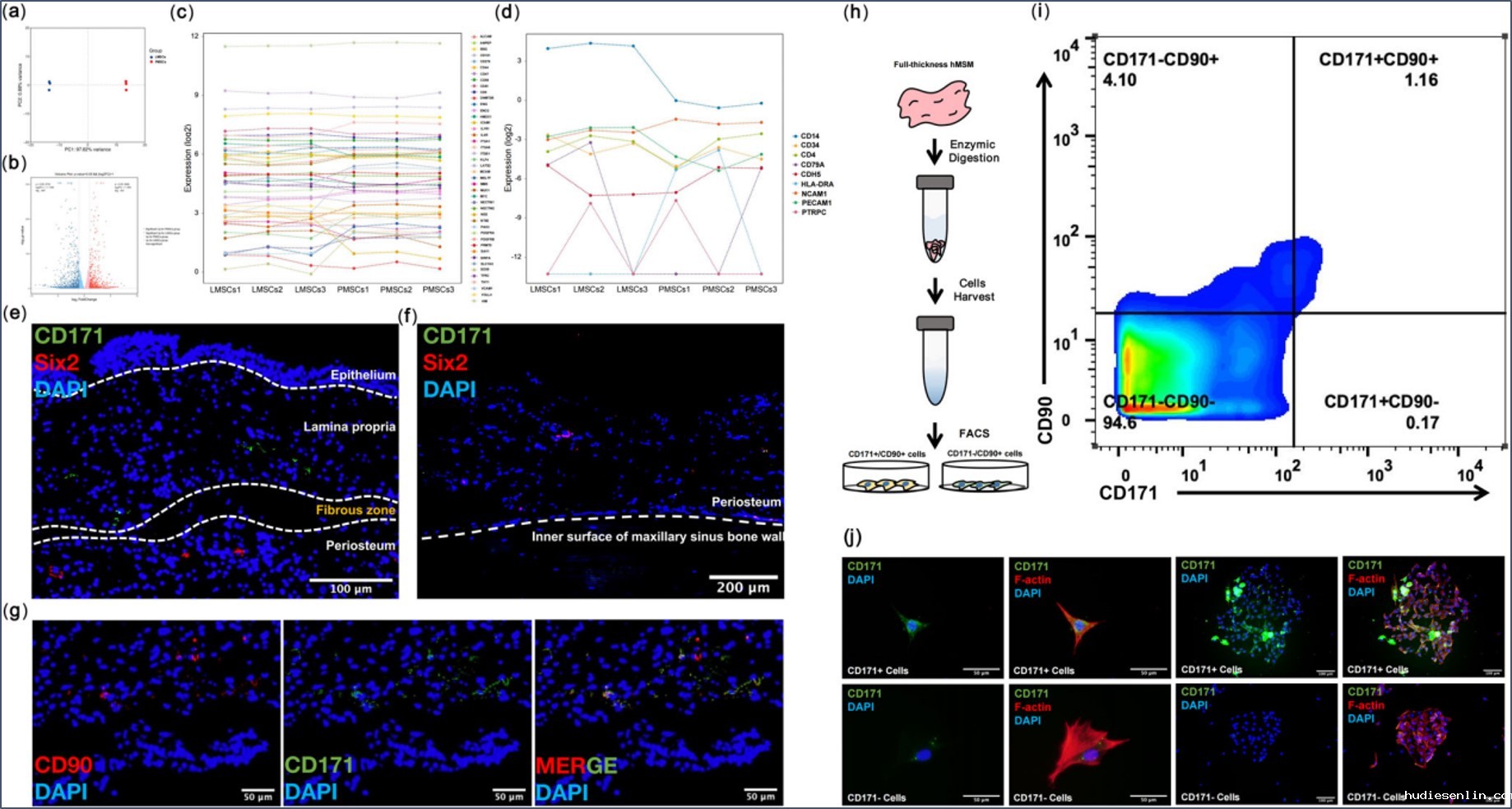 本研究采用物理分离和酶解相结合的方法,首次将人来源的上颌窦黏膜 (hMSM) 逐一分离成单层结构。通过免疫组织染色等技术对hMSM中间充质干细胞 (MSCs) 进行定位。采用外植体细胞培养法扩增hMSM中固有层来源的间充质干细胞 (LMSCs) 和骨膜层来源的间充质干细胞 (PMSCs),并通过多谱系分化实验、集落形成实验、流式细胞术等进行MSCs鉴定。采用RNA测序等方法比较了LMSCs和PMSCs的生物学特性。研究结果显示,LMSCs和PMSCs分别被鉴定为CD171+/CD90+表型和CD171-/CD90+表型。LMSCs和PMSCs的优势分别体现在增殖能力和成骨分化能力上。此外,PMSCs具有招募并促进LMSCs成骨分化的能力。此项研究结果有助于开发基于原位MSCs的上颌窦区骨再生新疗法。LMSCs和PMSCs将在未来成为有价值的临床前研究细胞工具。